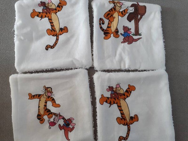 Les lingettes lavables sont parfaites pour débuter la toilette de bébé. Le tissus en éponge est tout doux pour les joues et sa taille permet à bébé de l'attraper facilement. Ces lingettes sont parfaites dans la salle de bain ou bien dans la cuisine, pour la toilette ou le fin de repas. Elles peuvent également servir pour la toilette et le démaquillage de maman. Elles vous dureront plusieurs années! Chaque lingette est cousu à la main.